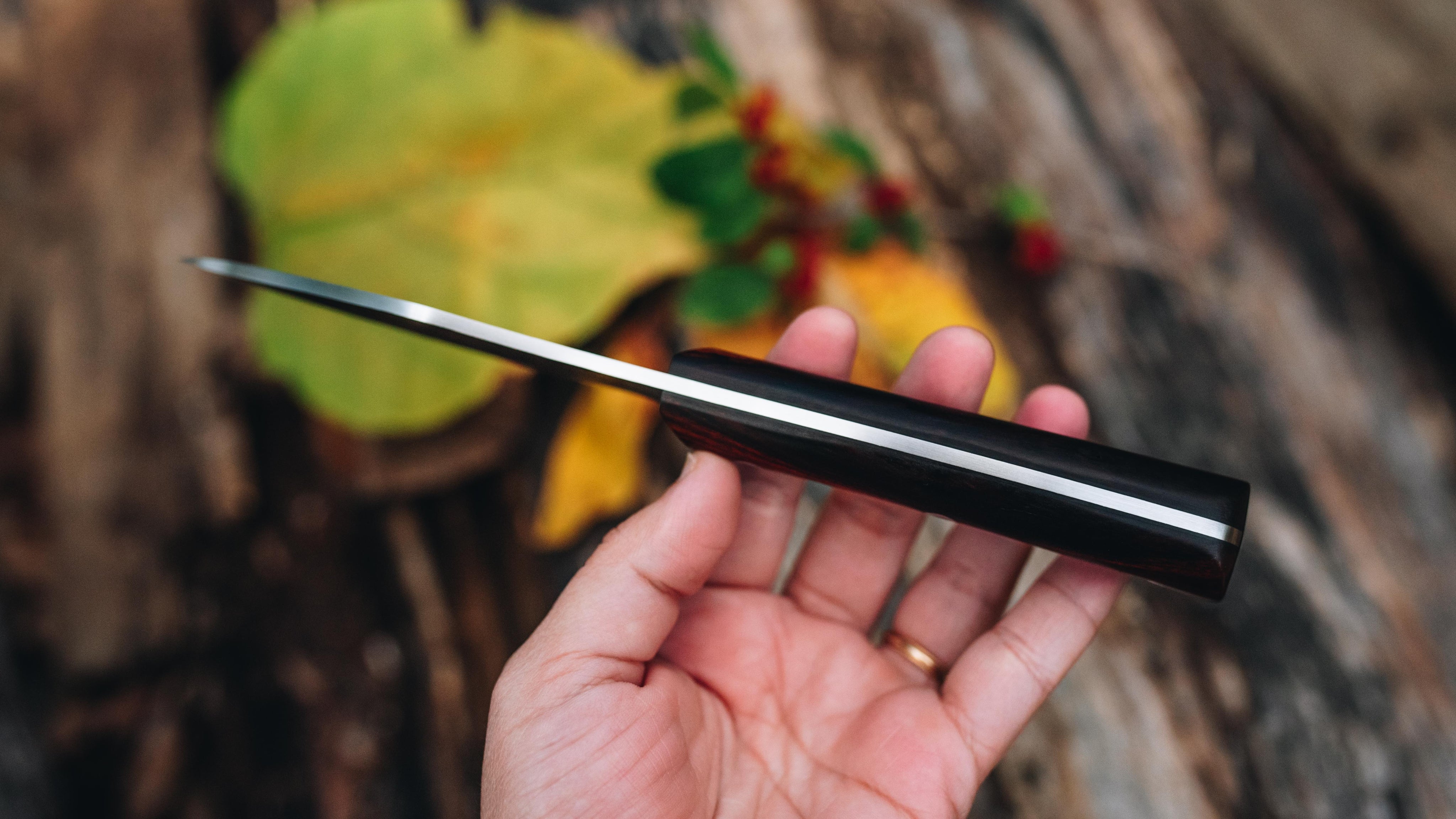 Ironwood with black fiber pinstripe liners, and aluminum hardware.